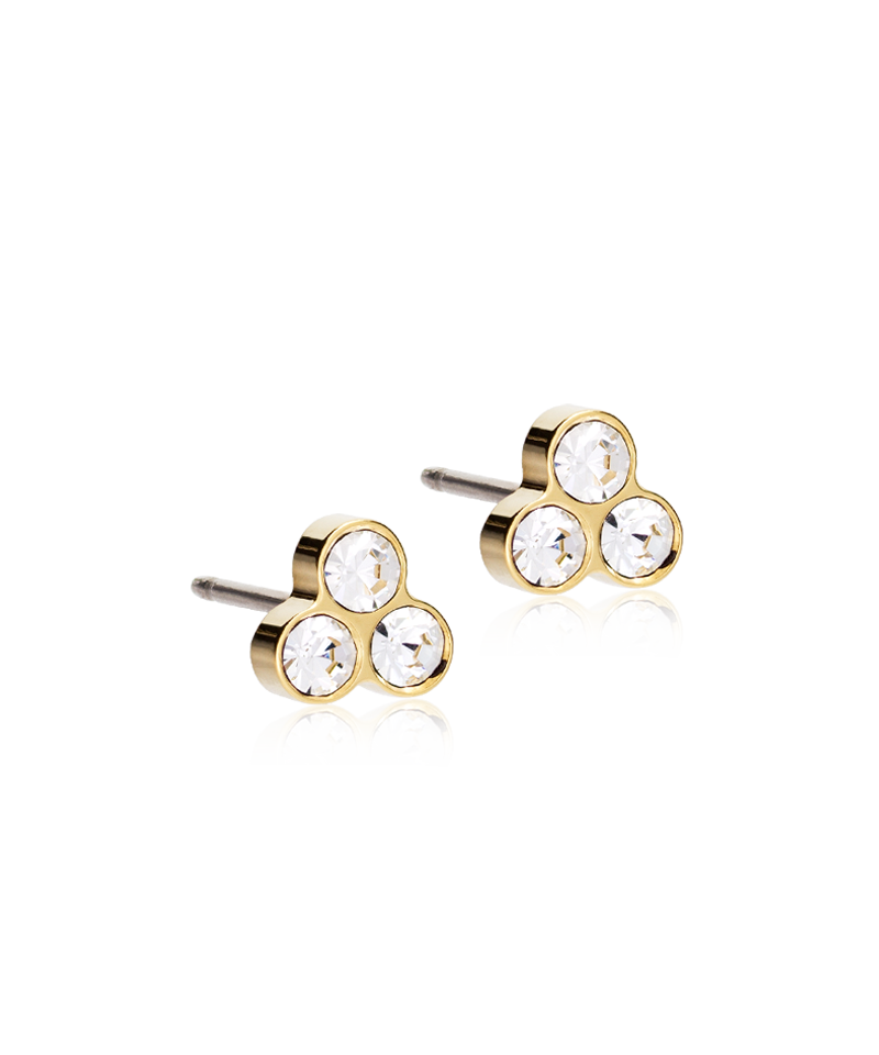 Size: 6 mmStone Color: ClearClasp Included: Titanium Earring ClaspMaterial: Pure Medical TitaniumStone: Crystal StonesFinish: Gold-Tone Plating