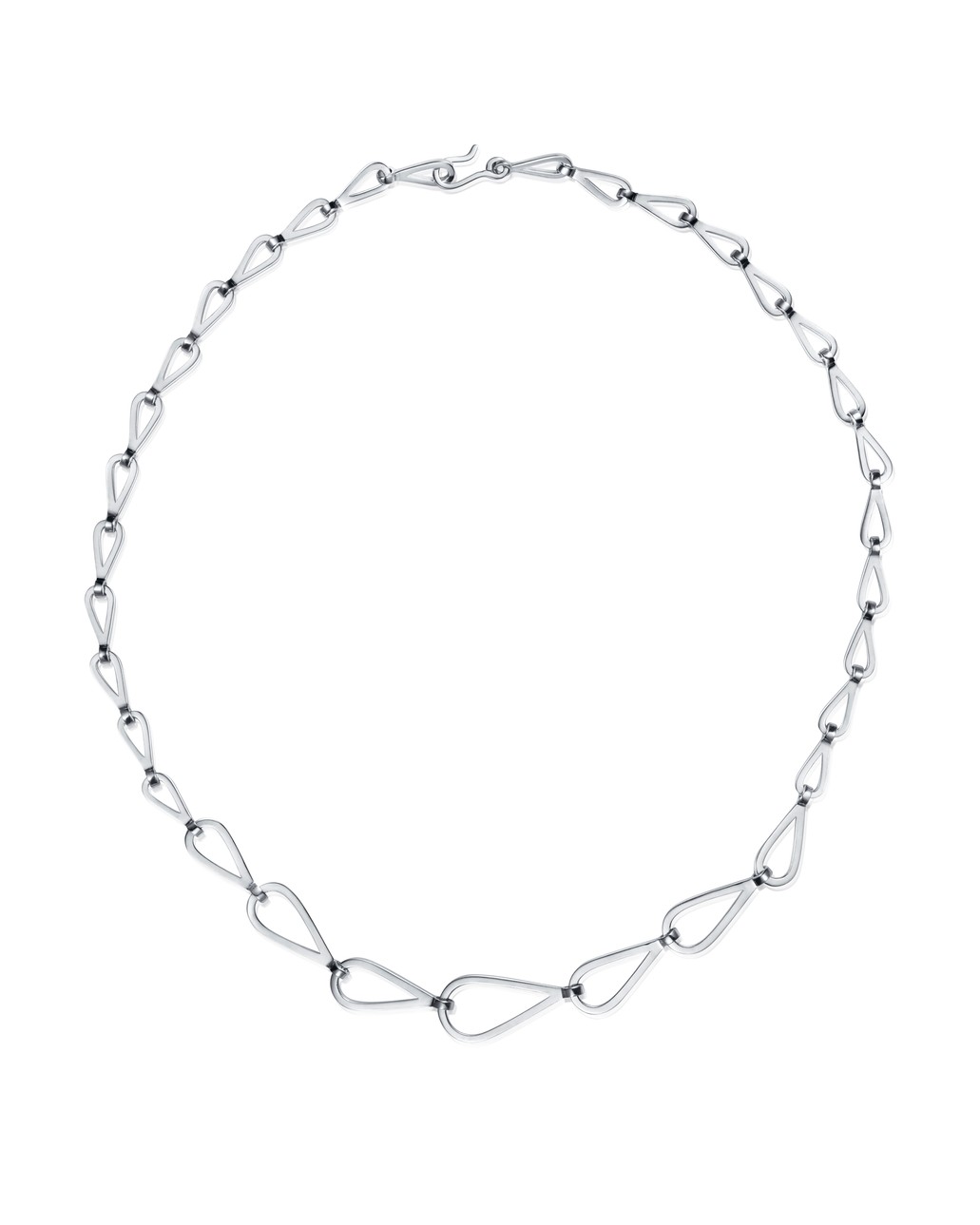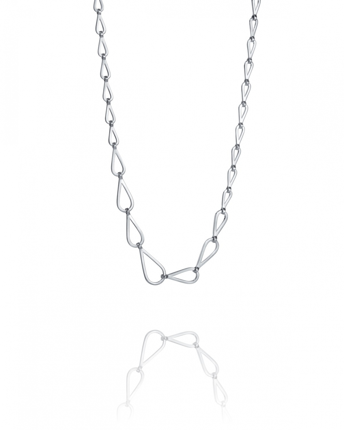 Necklace with teardrop-shaped links in different sizes, beautifully and elegantly made of recycled 925 sterling silver. Hooked on a feeling is also available as an earring and bracelet. Width: 6-13.5mm Length: 50cm