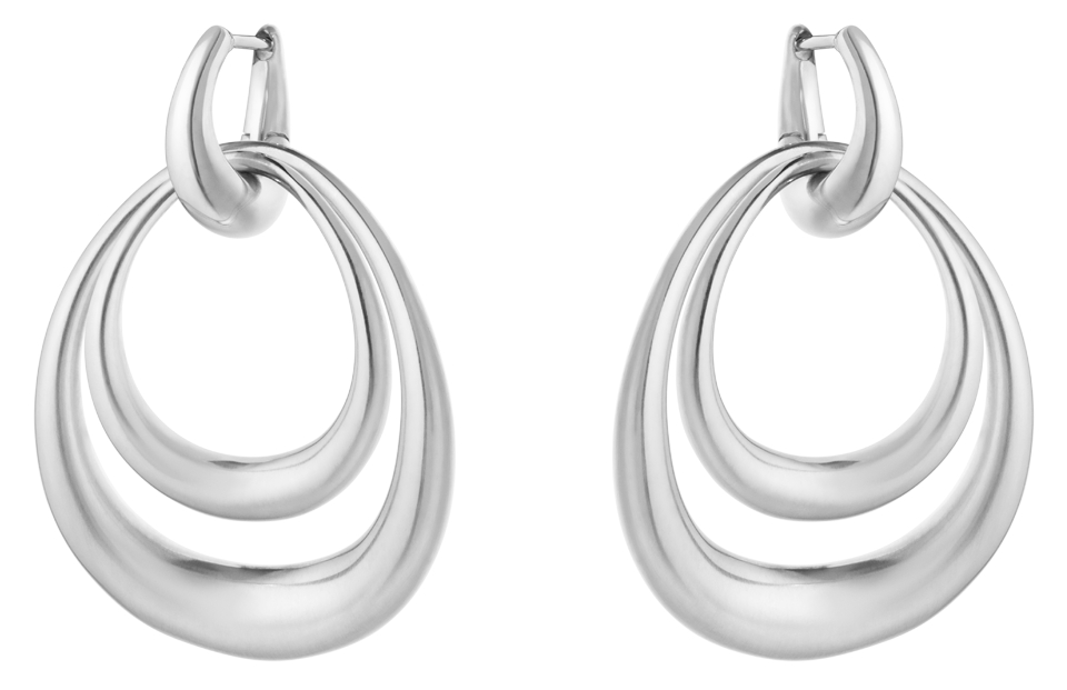 These elegant sterling silver earrings are designed to be worn in a variety of ways. The earrings feature two detachable hoops in the Offspring collection's signature organic shape, which can be layered or worn individually. The unique design allows for up to four different combinations for a personal expression.