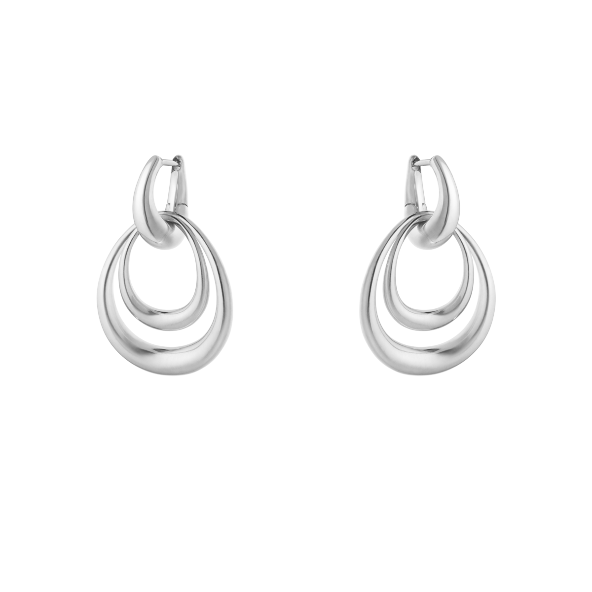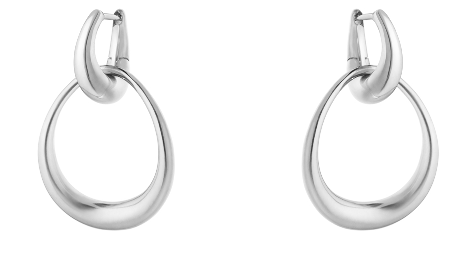 These elegant sterling silver earrings are designed to be worn in a variety of ways. The earrings feature two detachable hoops in the Offspring collection's signature organic shape, which can be layered or worn individually. The unique design allows for up to four different combinations for a personal expression.