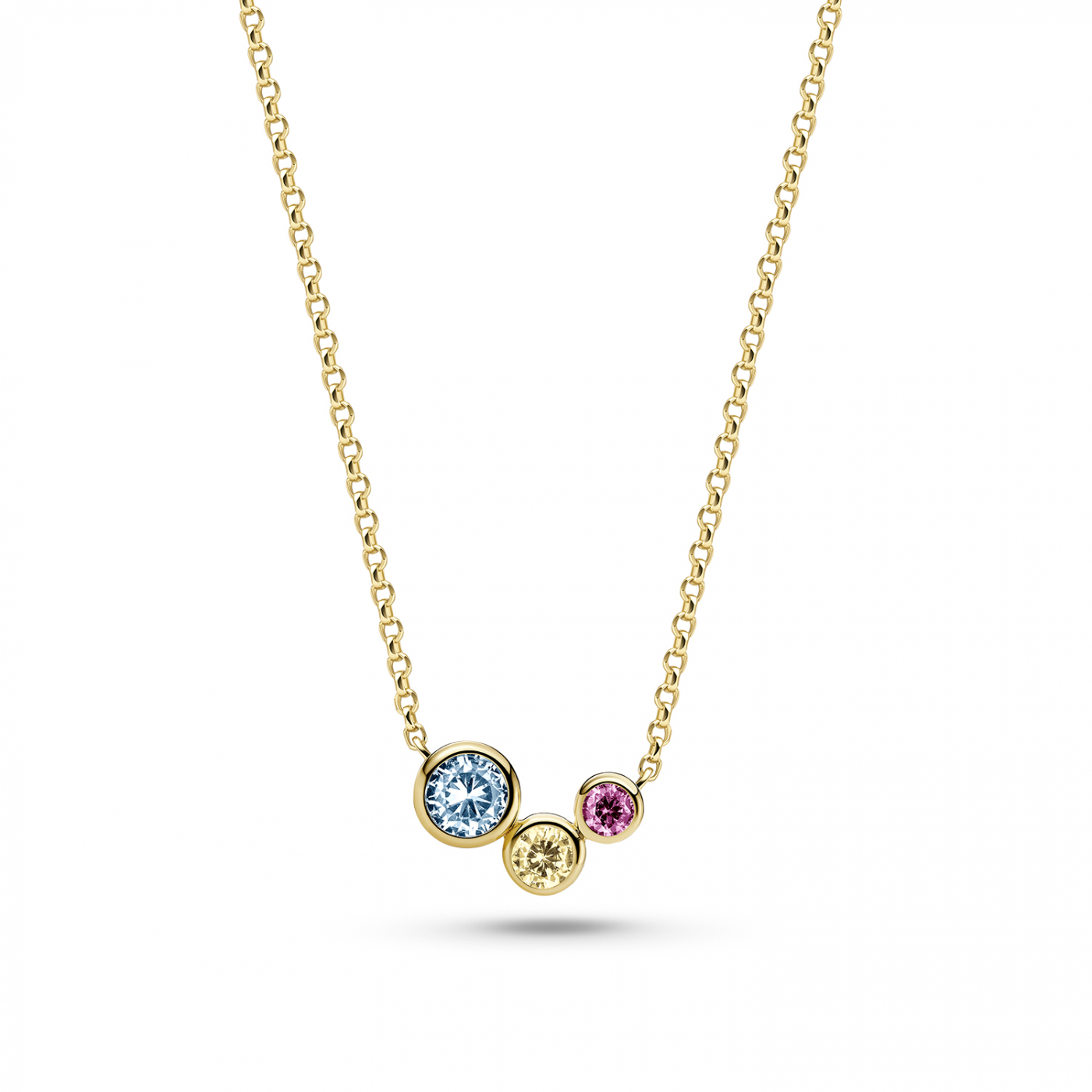 Necklace made of 18k gold plated 925 Sterling Silver, with a polished surface and handset with,facet cut multicoloured zirconia.